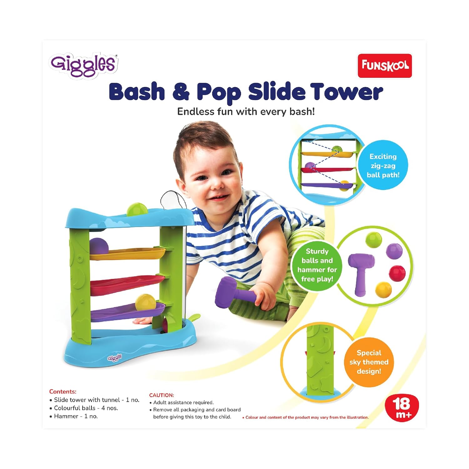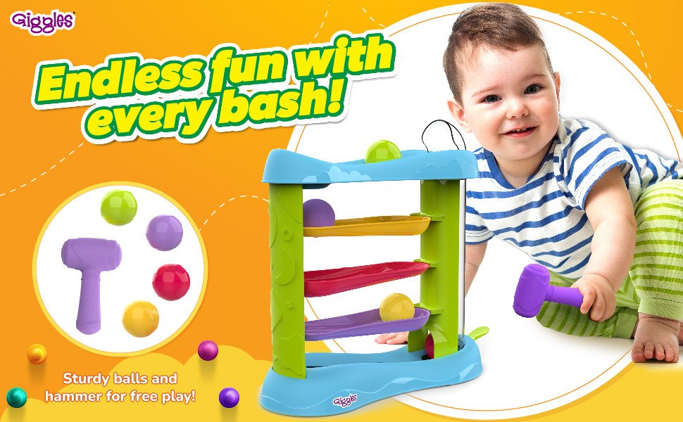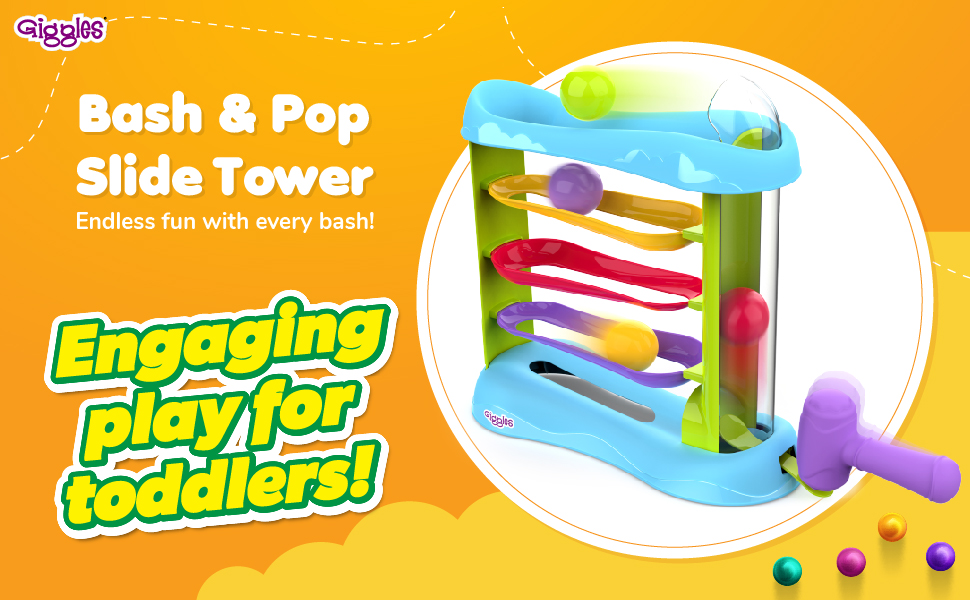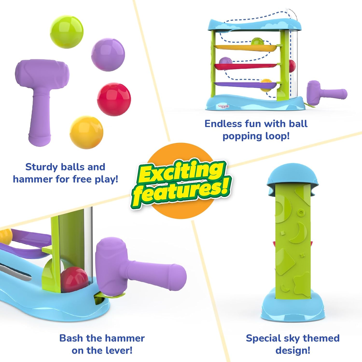Interactive Hammer Toy – Kids can bash the balls with the hammer and watch them roll down the colorful slide tower for endless fun.