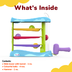 Slide Tower with Tunnel – 1 No. Colourful Balls – 1 No. Hammer – 1 No.