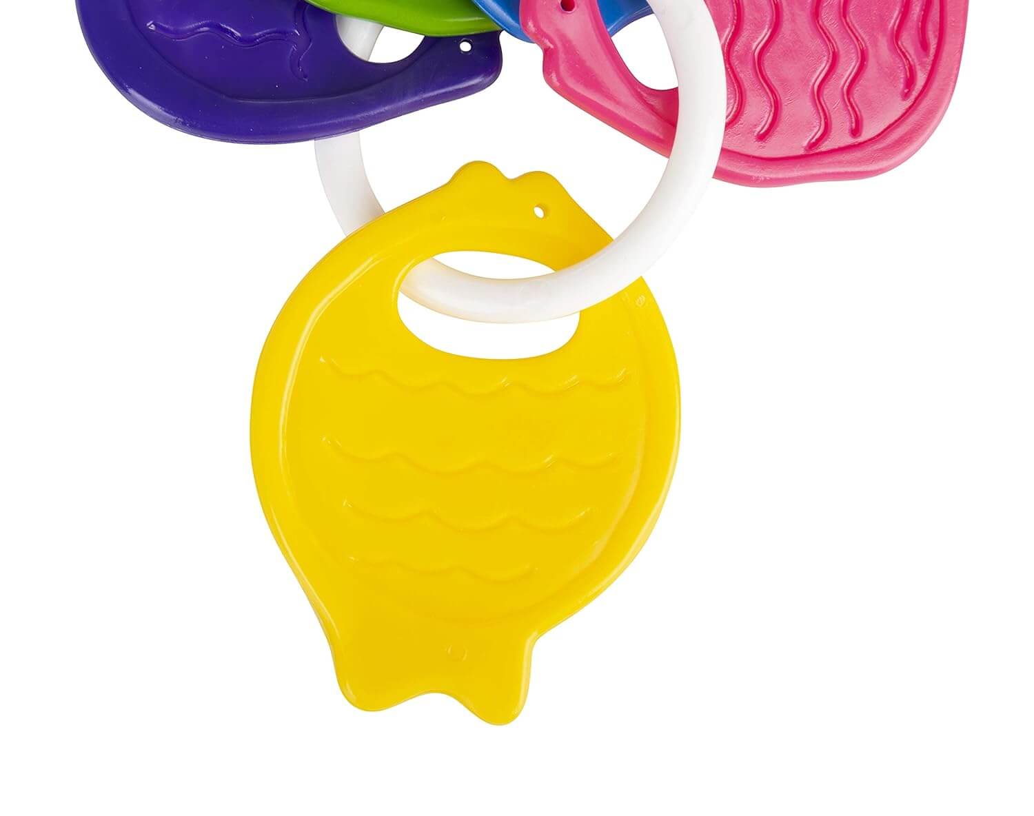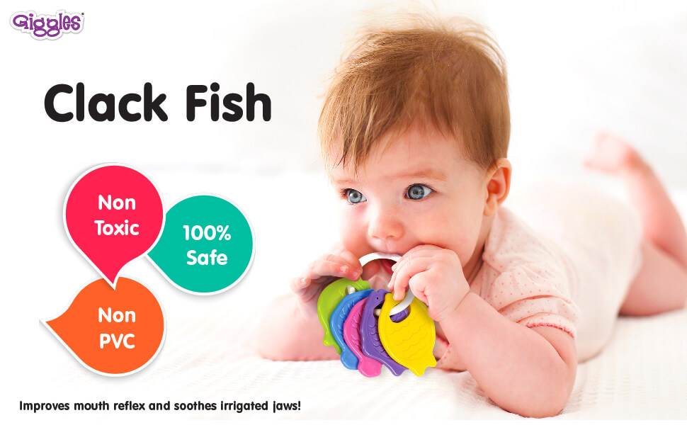 With bright colours, the Funskool baby teether makes an attractive toy for your baby. It comes in the shape of a small friendly-looking fish in yellow, blue, pink, purple and green. A lightweight toy, it weighs only 59g, which makes it easy for your toddler to carry around. This child-safe baby teether has been crafted by putting together a number of non-PVC and fish-shaped teethers that make a rattling sound when shaken. This sound distracts children while they are crying or disturbed and entertains them.