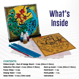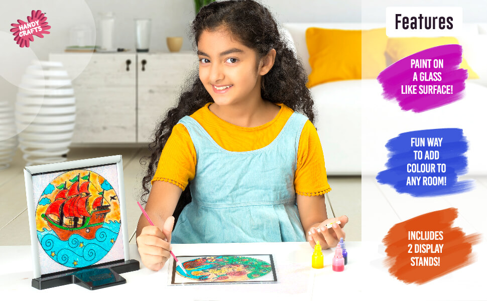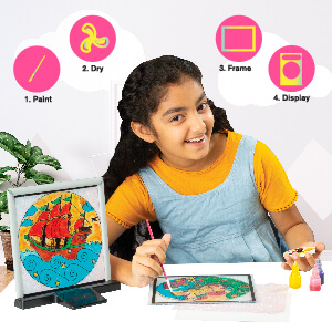 The glass like stencil that comes with the set features a beautiful portrait image. The stencil borders prevent the colours from getting mixed. It guides your child to paint the picture perfectly.