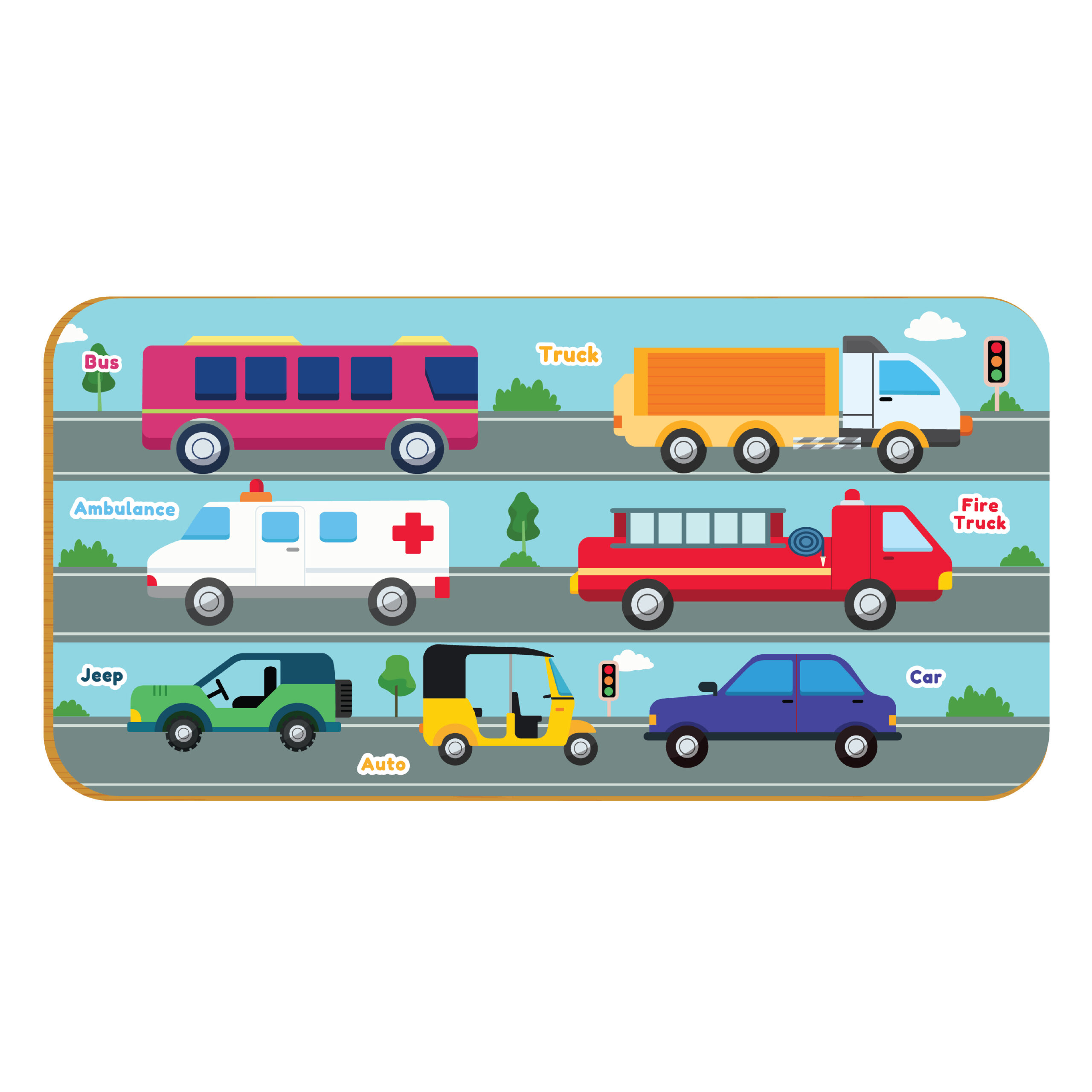 * Bright coloured wooden pieces for easy recognition.