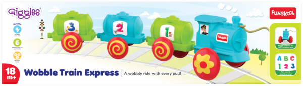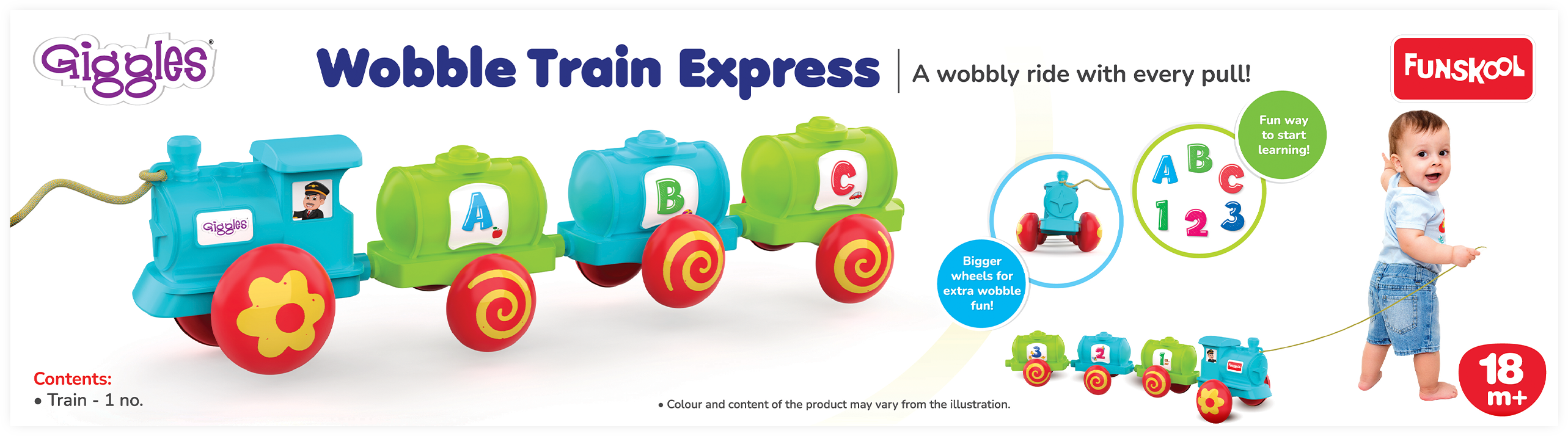 Wobble Train Express is an exciting pull-along toy designed to engage toddlers in both play and learning. Featuring vibrant alphabets on one side and numbers on the other, it helps introduce early literacy and math concepts in a fun, interactive way. As little ones pull the train along, its wobbly motion adds extra joy to every step. With its colourful design and educational features, the Wobble Train Express is the perfect toy to spark curiosity while promoting motor skills and cognitive development.