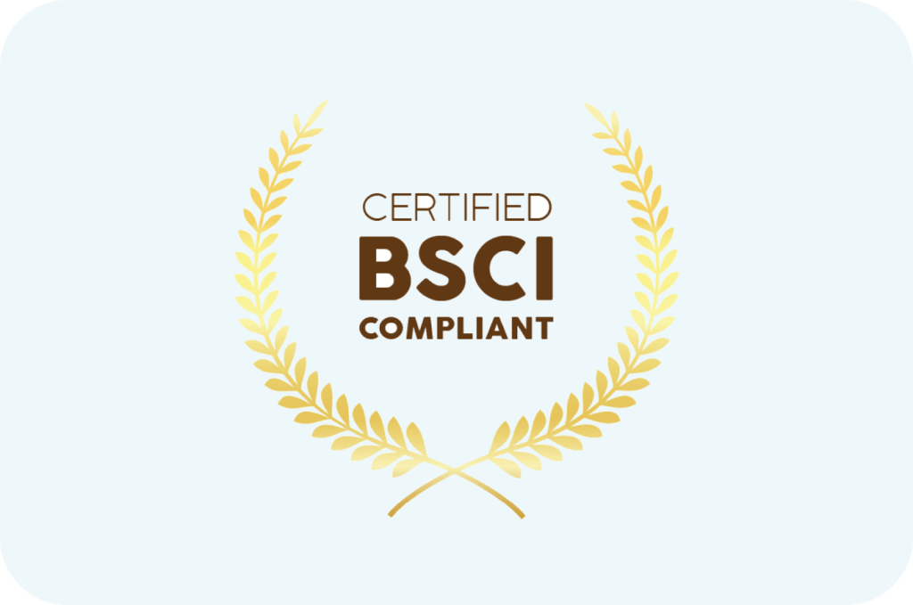 Certified as BSCI (Business Social Compliance Initiative) compliant.