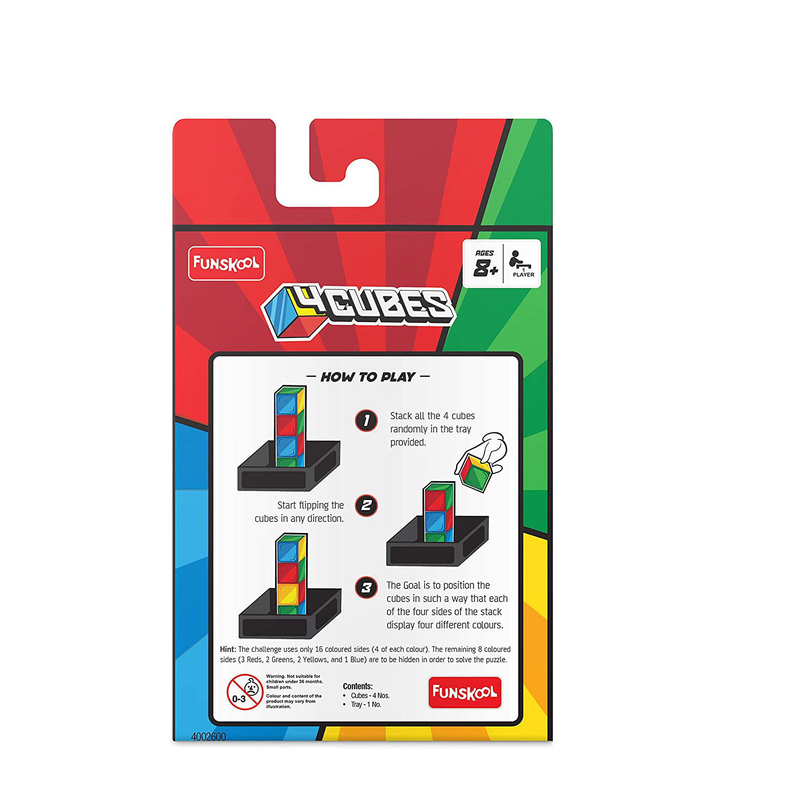 “With 4 cubes in the box, this strategy game is more than just simply stacking. Keep stacking in any random order trying to get 4 different colours on all the four faces of the tower stack ,the options are endless.”
