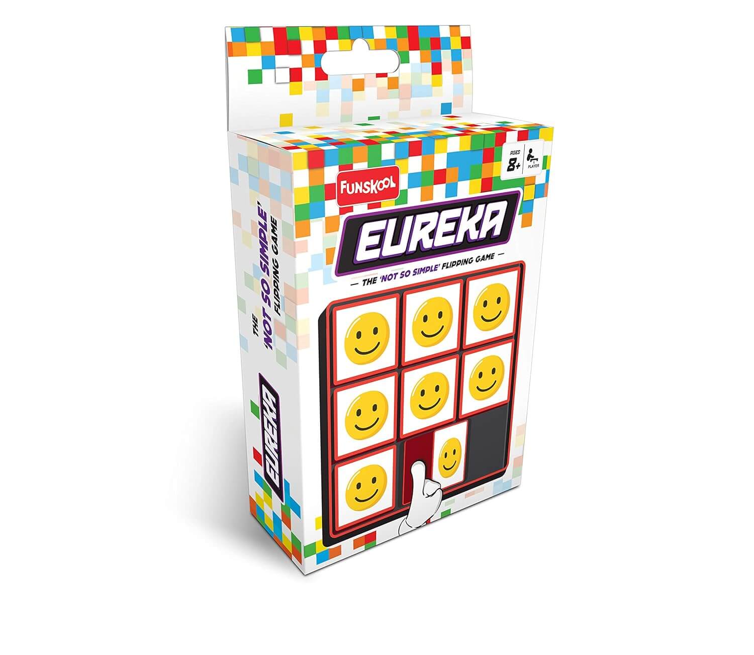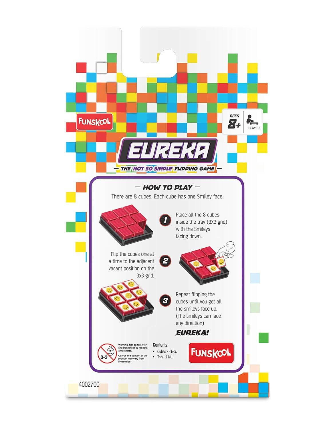 Place all 8 cubes in the tray. Flip the cubes one at a time to the adjacent vacant position. Keep flipping until you get all the smilies face up. Then scream Eureka with a Happy Smile on your face.