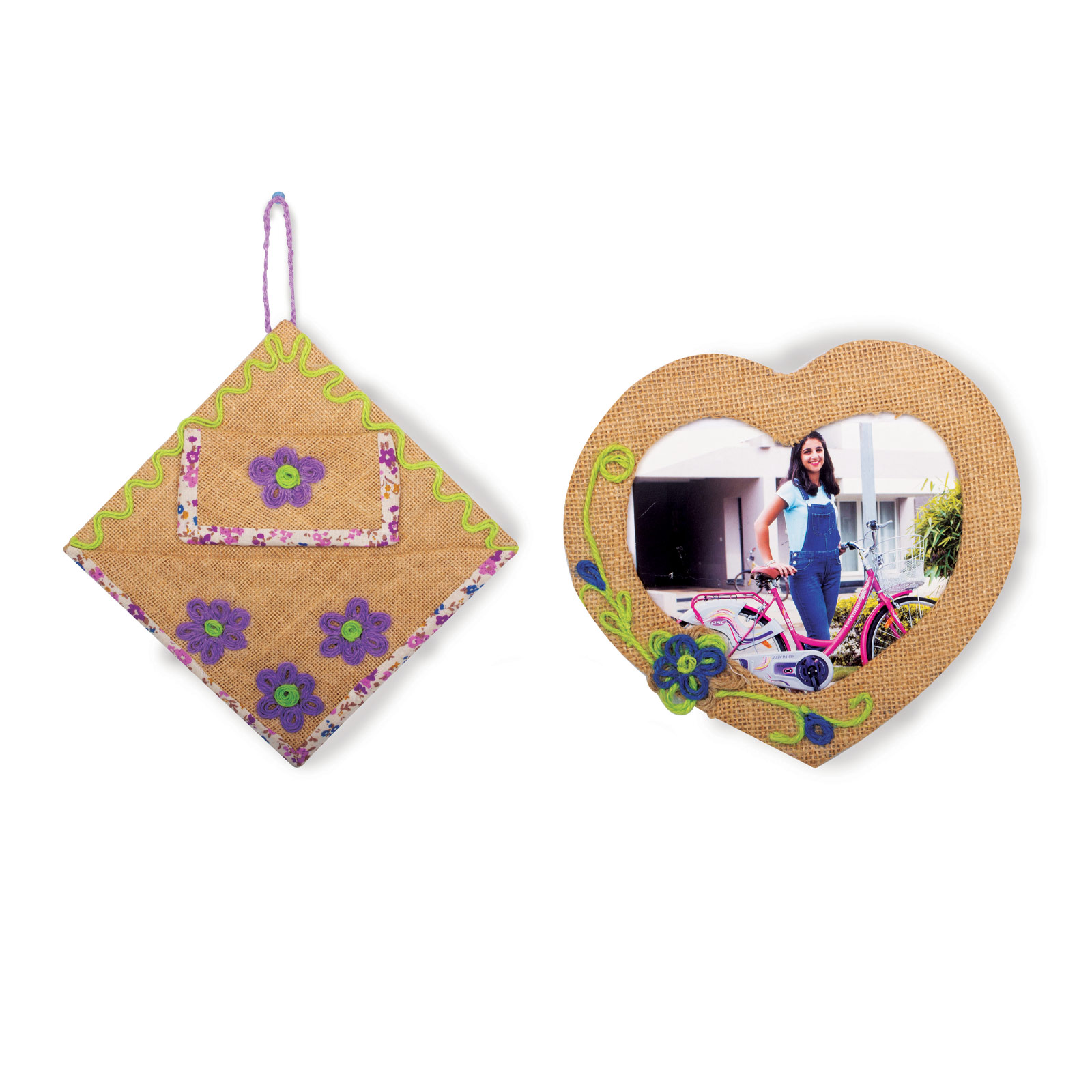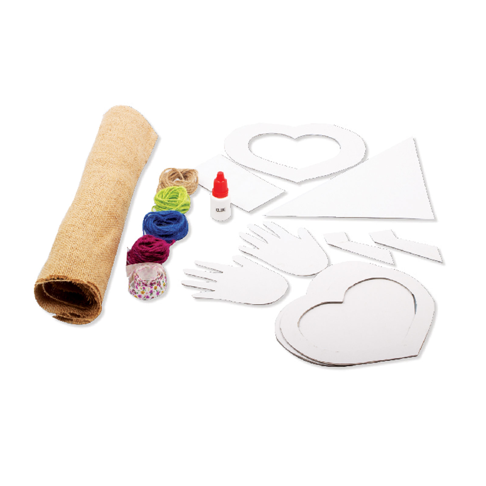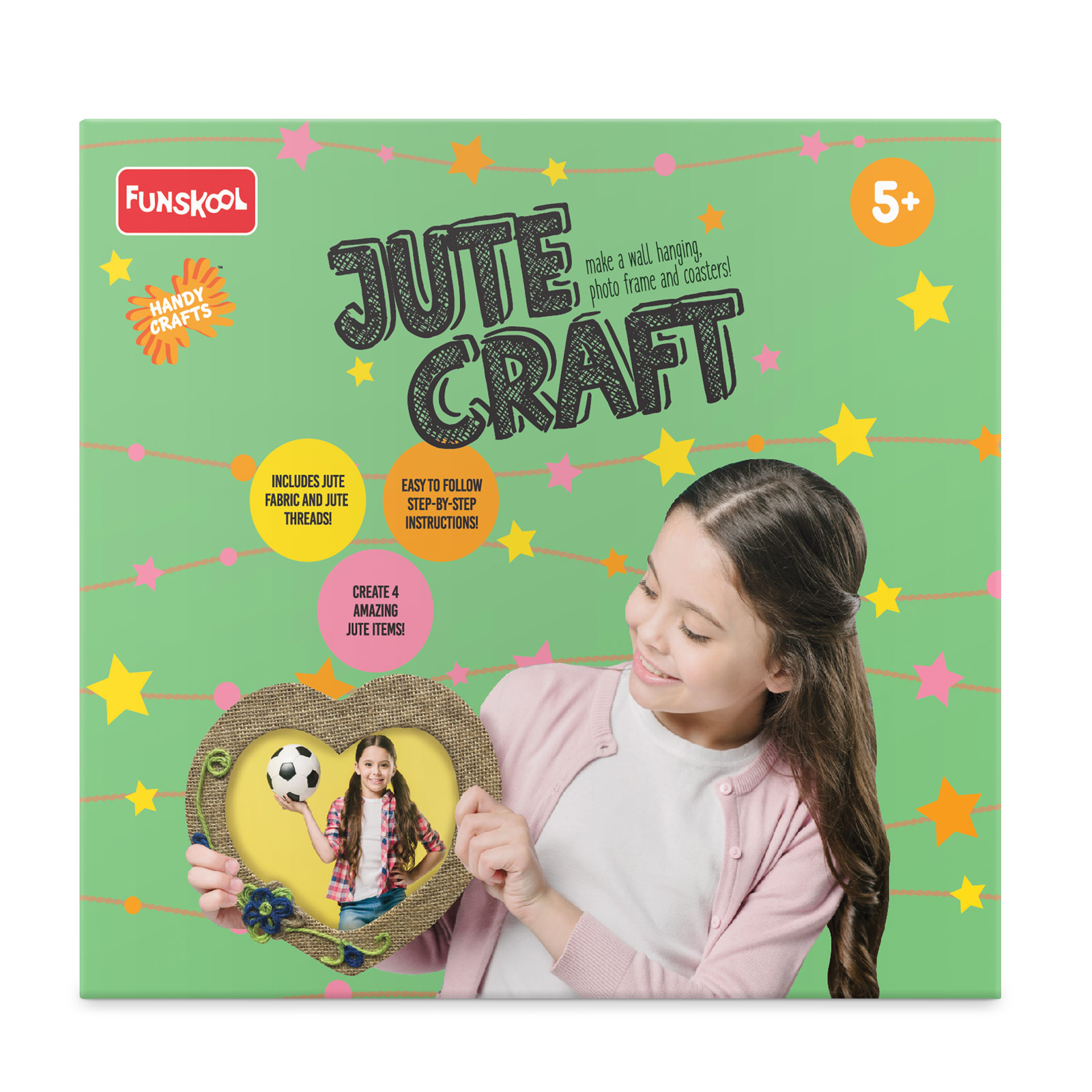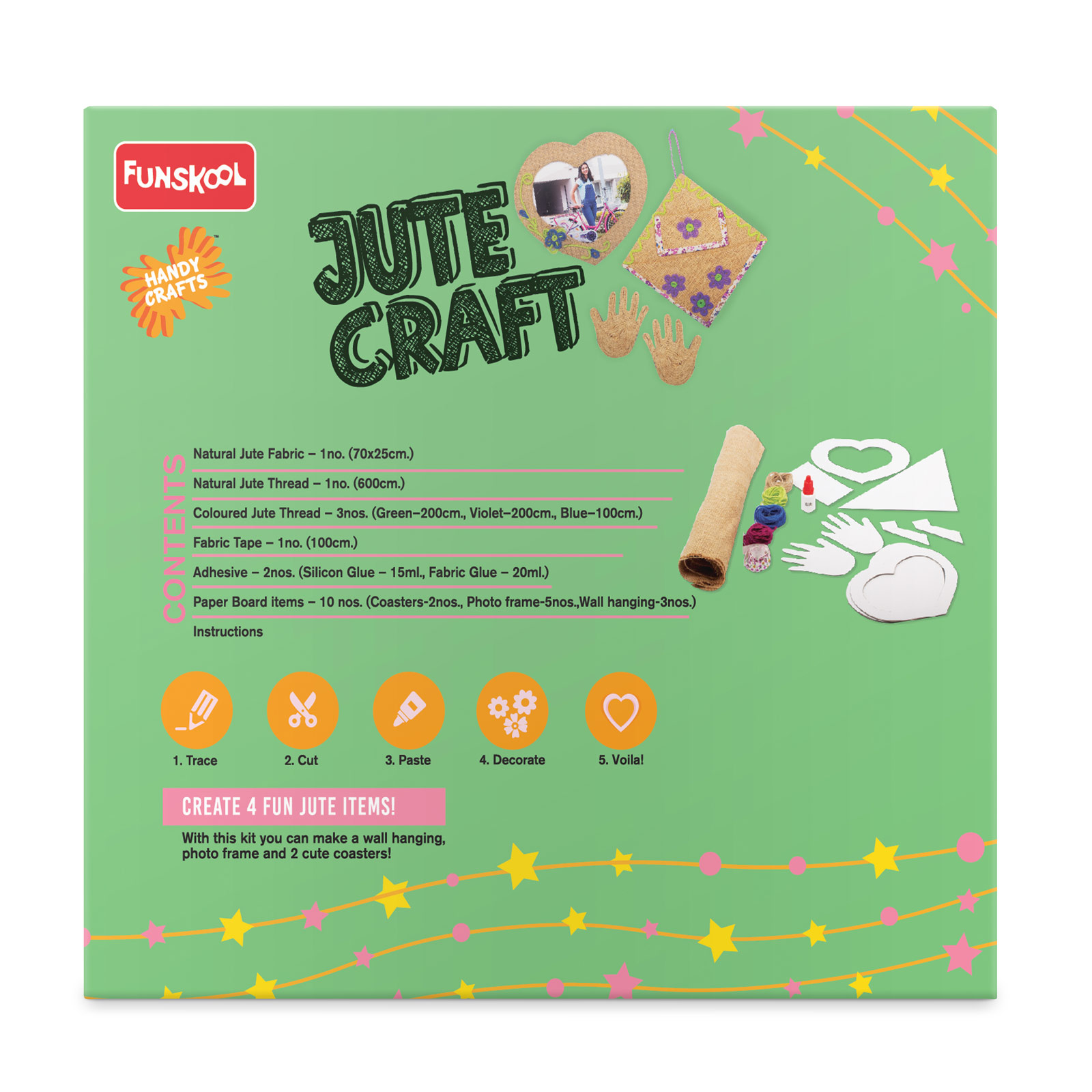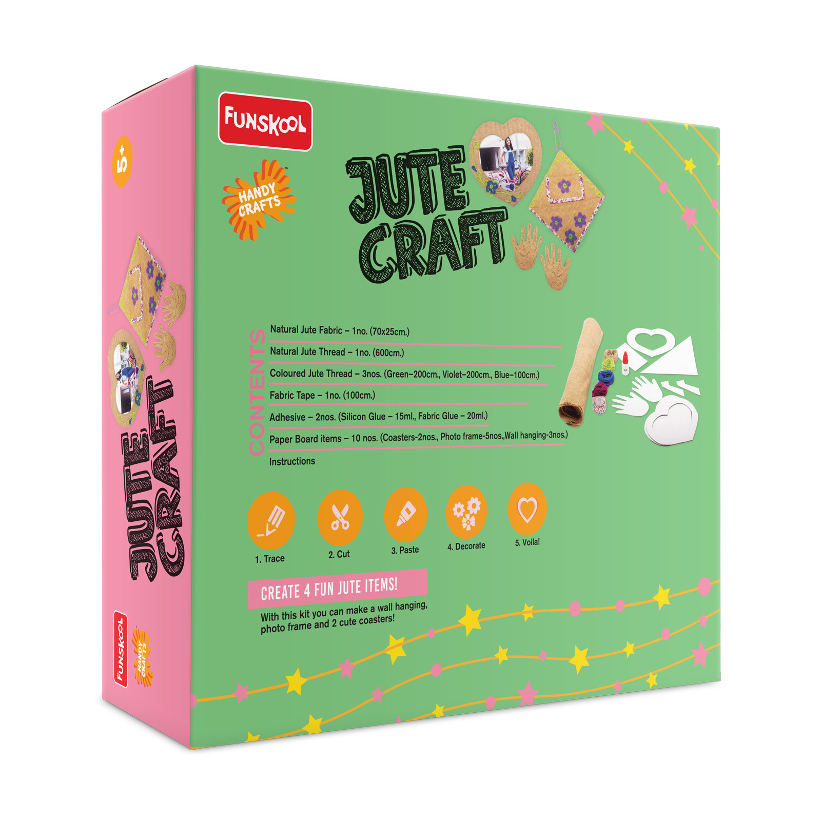 This kit comes with a sheet of natural jute fabric, natural jute thread, coloured jute thread, fabric tape, adhesives, andstencils. It can be used to create some fun usable DIY items and get kids indulged in arts and crafts.