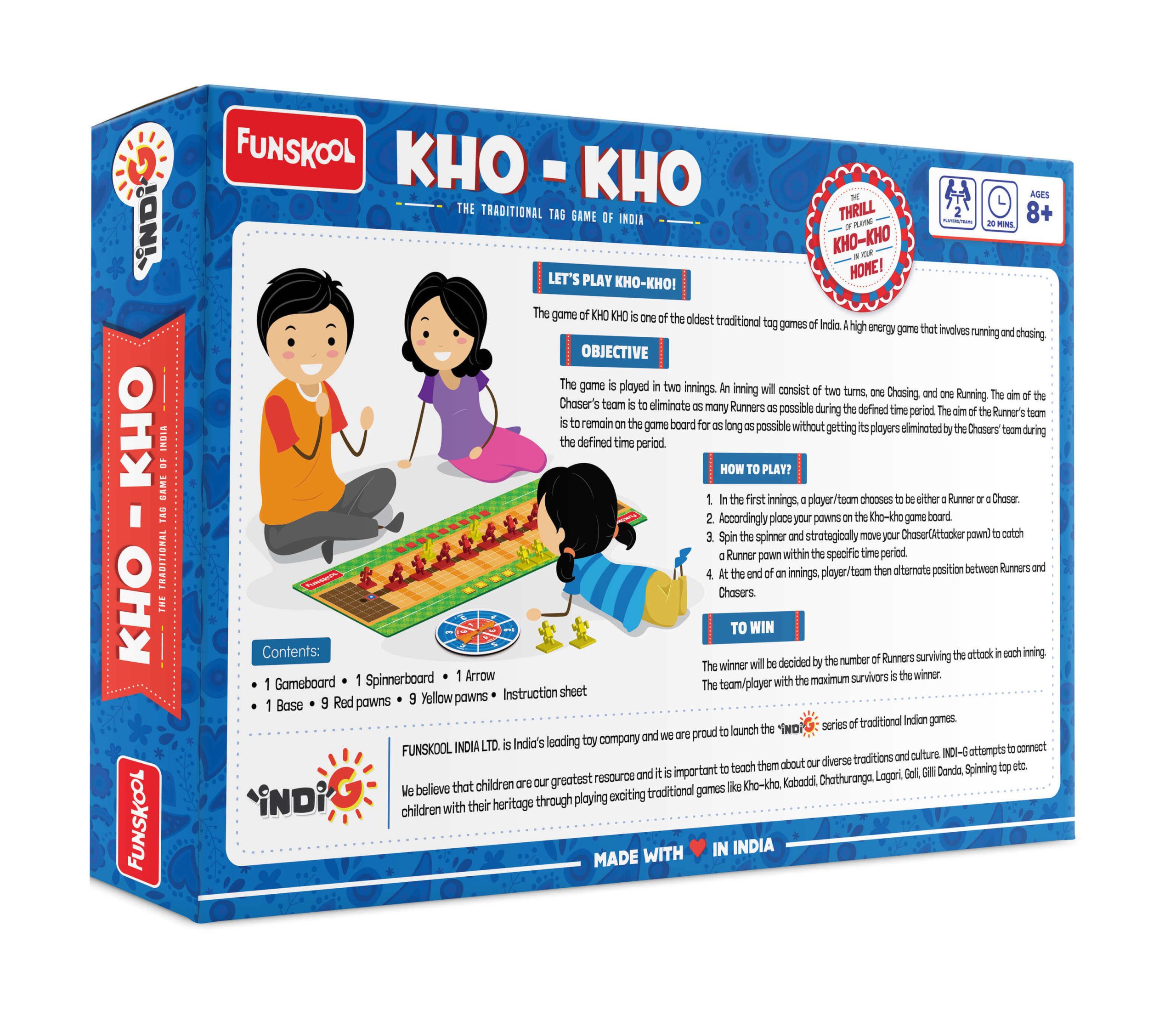 Kho Kho is a board game based on a tag game popular in India. This is an abstract game for 2 players or teams which closely simulates the real game.