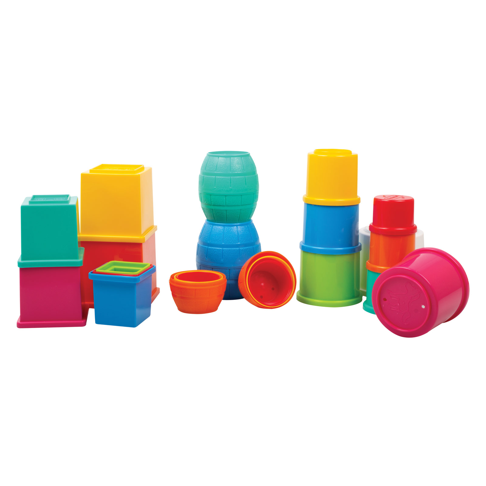 A great gift set for babies from Funskool. The set contains different toys, that would help your baby to enhance their visual and hearing skills. Explore shapes that belong to the same toy. Arrange shapes from small to big or big to small with the same toy. Make fun shapes by linking the chains. Great for learning about the colors and developing matching skills.