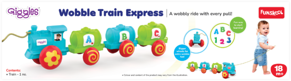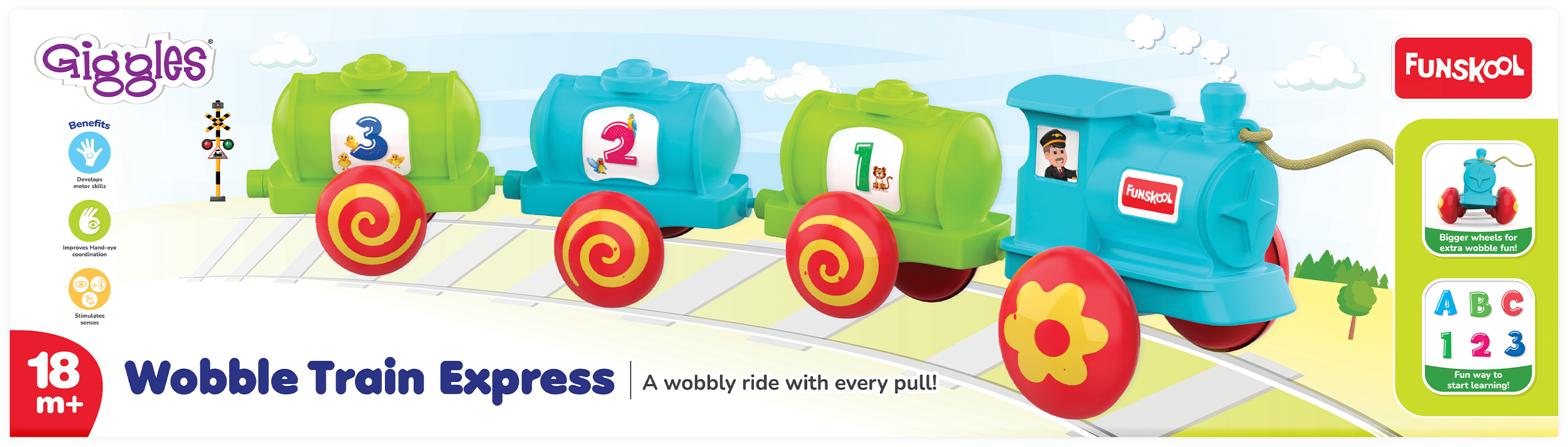Wobble Train Express is an exciting pull-along toy designed to engage toddlers in both play and learning. Featuring vibrant alphabets on one side and numbers on the other, it helps introduce early literacy and math concepts in a fun, interactive way. As little ones pull the train along, its wobbly motion adds extra joy to every step. With its colourful design and educational features, the Wobble Train Express is the perfect toy to spark curiosity while promoting motor skills and cognitive development.